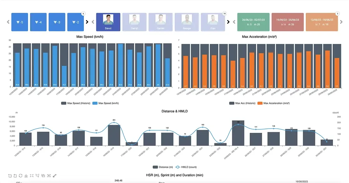 Whether it's a single session or multiple seasons, manage your club data history within one single platform.